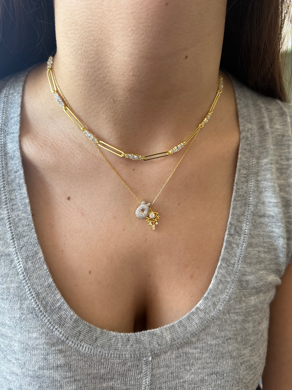 Taşlı Kilitli Zincir Kolye | 925 Ayar Gümüş